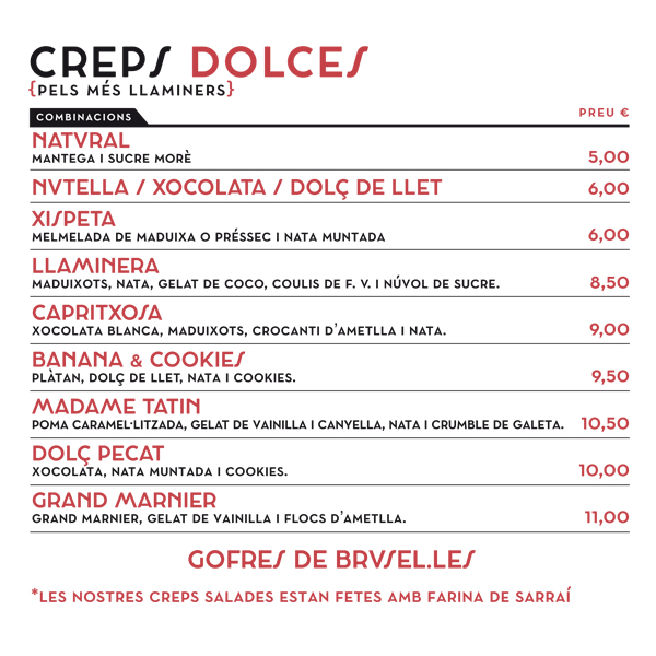 ESTEM AL MASNOU A LA PLAÇA NOVA DE LES DONES DEL TÈXTIL. A ON PODRÀS GAUDIR DE CREPS ARTESANALS FETES AL MOMENT, DOLCES O SALADES, CREPS DE BRUSEL’LES, GELATS ARTESANALS, ORXATES, GRANISSATS I MOLT MÉS! T’HI ESPEREM!